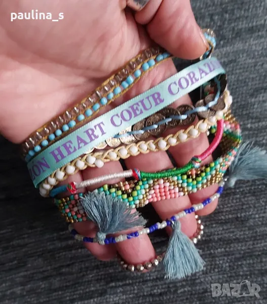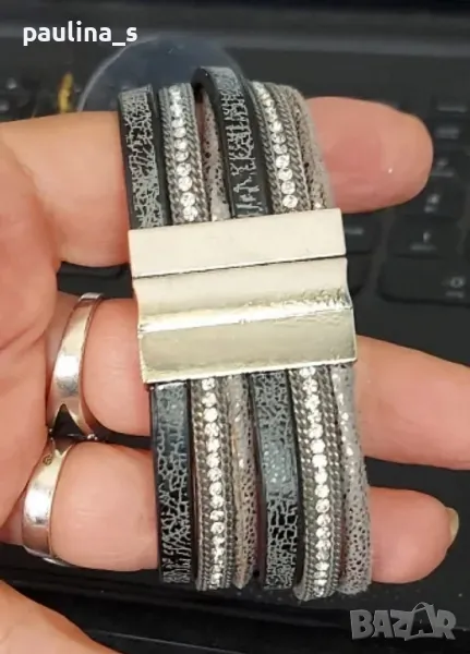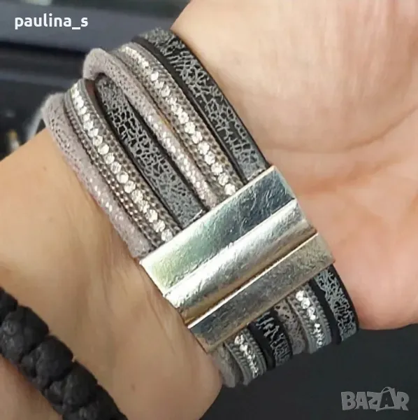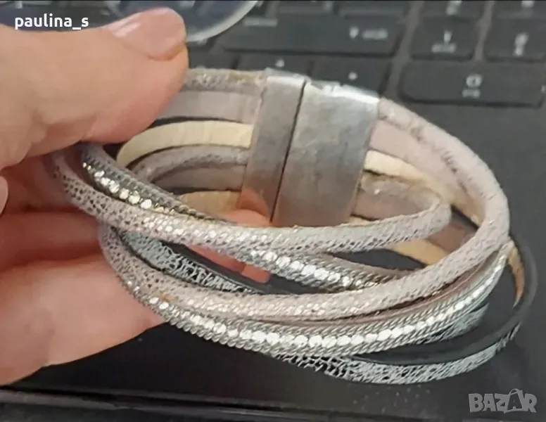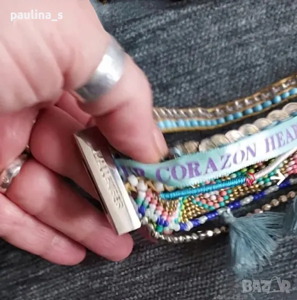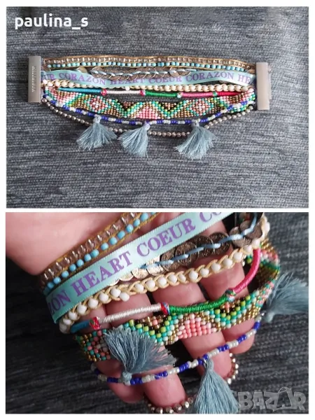 1️⃣. Колаж / "Hallhuber" - Уникална маркова гривна, ръчна изработка с магнитно закопчаване. Сребриста закопчалка от медицинска стомана, дължина 19см. Цената е крайна 49,99лв / 24,9евро. На живо е хипнотично приковаваща погледите! Със златистата закопчалка е продадена. Прилагам и скрийншот за сверяване на цените на бранда! Не е нова, но е без дефекти.
