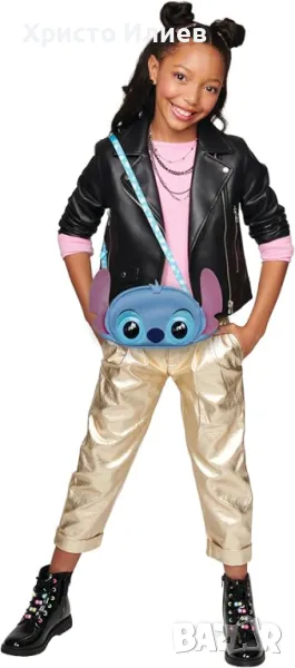 Когато детето докосне главичката на чантата, то ще чуе сладки звуци, както и редица песни и други мелодии. Щом докосне челото, Stitch ще му изпрати целувка. В движение докосни главата на Стич и очичките започват да мигат. Докосни челото му и той ще започне да мига, да се кикоти, да ръмжи и да издава други очарователни звуци.Чантата има и дълга дръжка, достигаща до 101.5 cm дължина, което я прави изключително удобна за носене.