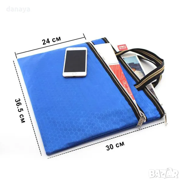 Голям преден джоб – побира документи с формат A4, осигурявайки удобство и бърз достъп до тях.