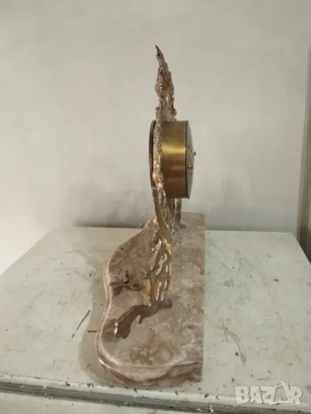 Корпус от мрамор и позлатен бронз.Механичен механизъм.Работи.