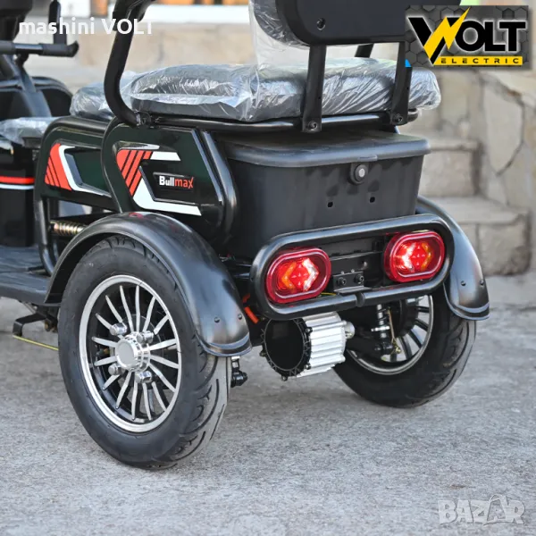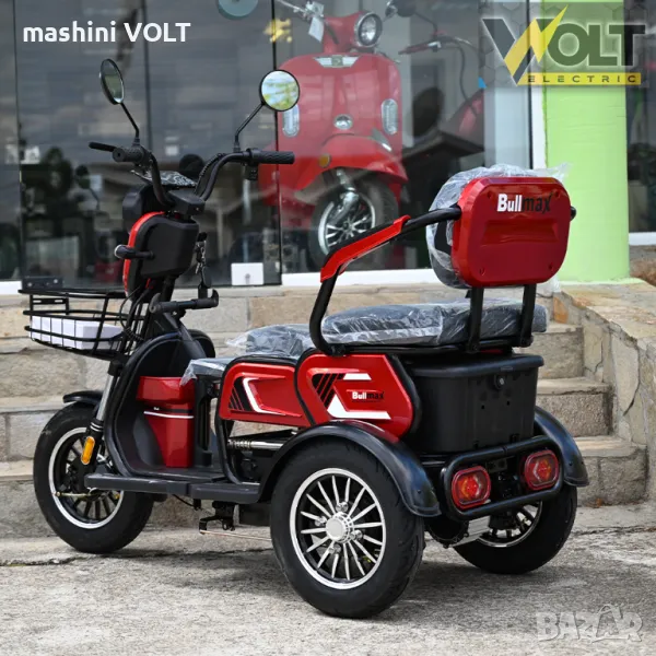 BULLMAX C1 MAX е електрическа триколка с 1, 2 или 3 места. Триколката е със задно предаване, диференциал и голяма мощност. Има товароносимост до 225кг. Специалната шейна- механизъм позволява придвижването на основната седалка назад, и използването на втората седалка при необходимост от две места. Трета, по- малка помощна седалка отпред би могла да се използва за качването на малко дете. Триколката е с две багажни отделения, с пълна LED светлинна окомплектовка, къси, дълги, габарити, предни и задни мигачи, стопове. Има голям LCD цветен дисплей, с показания за скоростта, изминатото разстояние, светлини, ниво на батерия и др. Има 3 скорости + задна. Освен предна и задна ръчна спирачка има допълнителна крачна спирачка, за по- голям комфорт и сигурност при управлението. Оборудвана е с 2 броя дистанционни, има безконтактно палене от дистанционното, както и звукова и светлинна аларма + механично съпротивление при опит за кражба. Развива до 35 км/час и има до 50 км пробег с едно зареждане, благодарение на големите си 20Ah батерии. Има предвидена възможност за поставянето на още една допълнителна батерия, с цел повишаване на пробега (ако е необходимо). По- големите MAXI гуми и високия клирънс (3.00-10") помагат за придвижването по всякакви терени, включително черни пътища, чакъл и др.