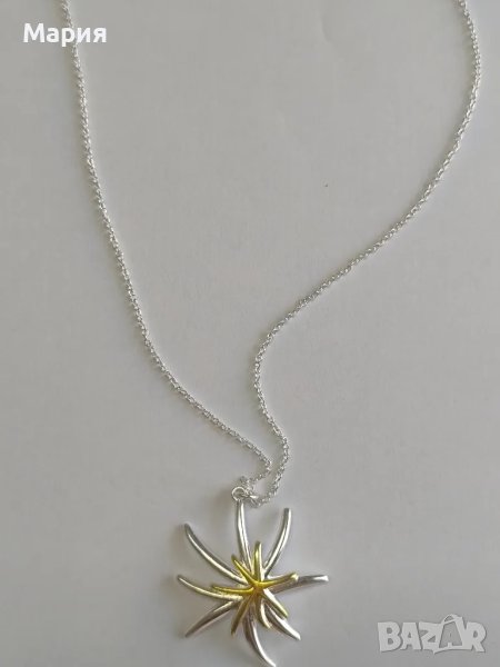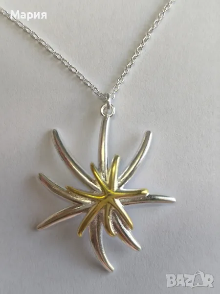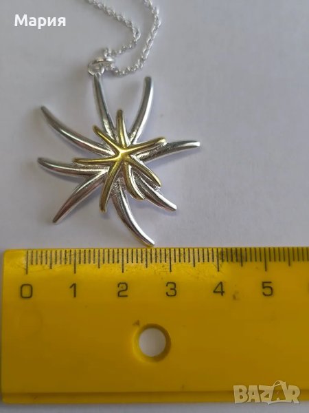 Нежно сребърно синджирче с голяма висулка във формата на морска звезда, печат 925.