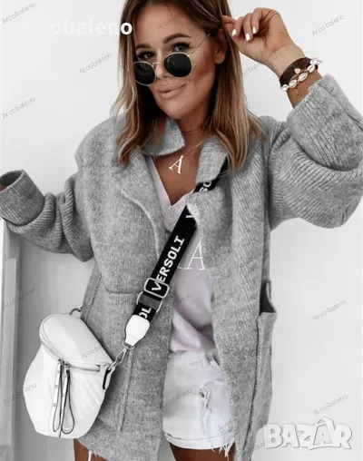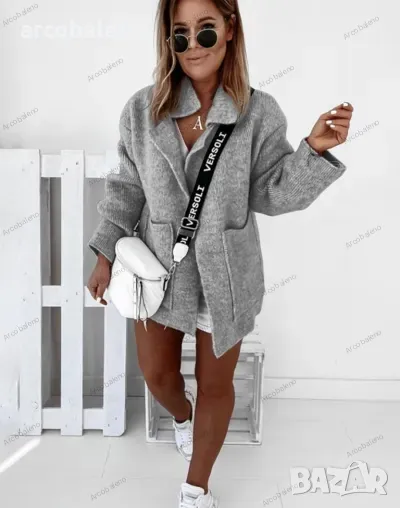 Дамска широка плетена жилетка с яка и големи джобове, 3цвята