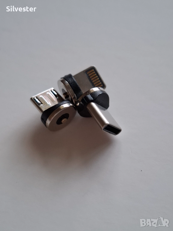 USB кабели за зареждане с магнитен прав и въртящ конектор на 90 градуса. За всички видове телефони, включително и айфон. Чисто Нови!