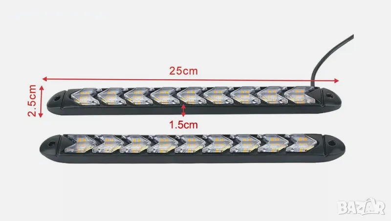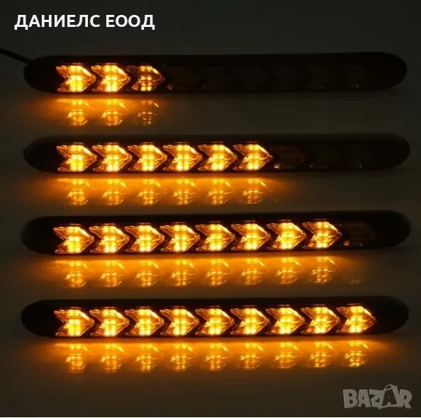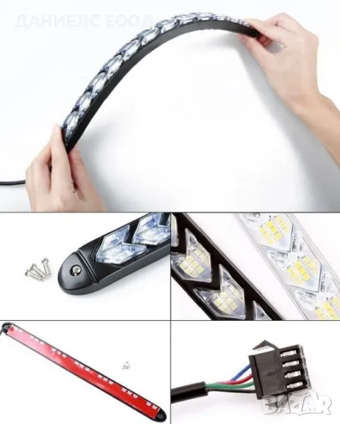 Дневни 9 LED светлини гъвкави с вграден бягащ мигач - 25см. 2 броя