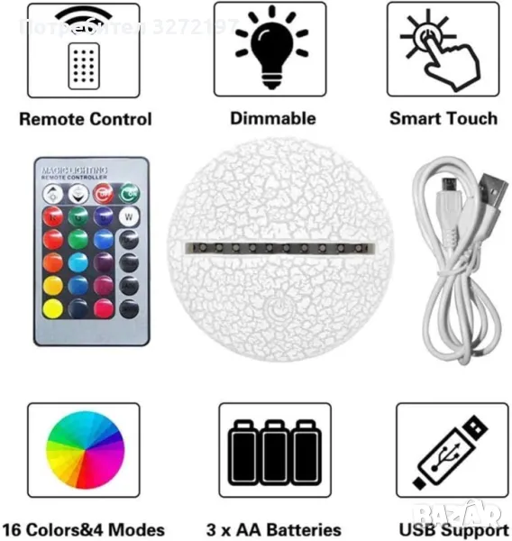 Холограмна 3D LED лампа Лъв/Лъвска глава -дистанционно управление 16 цвята+други режими на управление модел 2023 г.