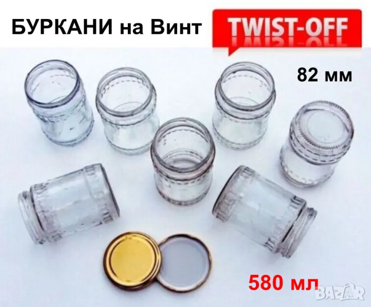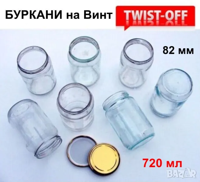 Налични и БУРКАНИ тип ОМНИЯ от 400 и 800 мл до 3 литра, ЗАТВАРАЧКА за бутилки тип КРОНЕНКОРК Ø26 и буркани тип ОМНИЯ Ø68 и Ø82, нови метални и пластмасови КАПАЧКИ, ЧЕТКА за миене, КАСИ Касети Касетки, БУРКАНИ на винт тип ТУИСТ-ОФ от 190 мл до 2,650 литра, БУТИЛКИ на винт, тип корона КРОНЕНКОРК и Шишета тип Широко гърло, ОТВАРАЧКА за бутилки / Тирбушон и консерви и др.(вижте обяви).