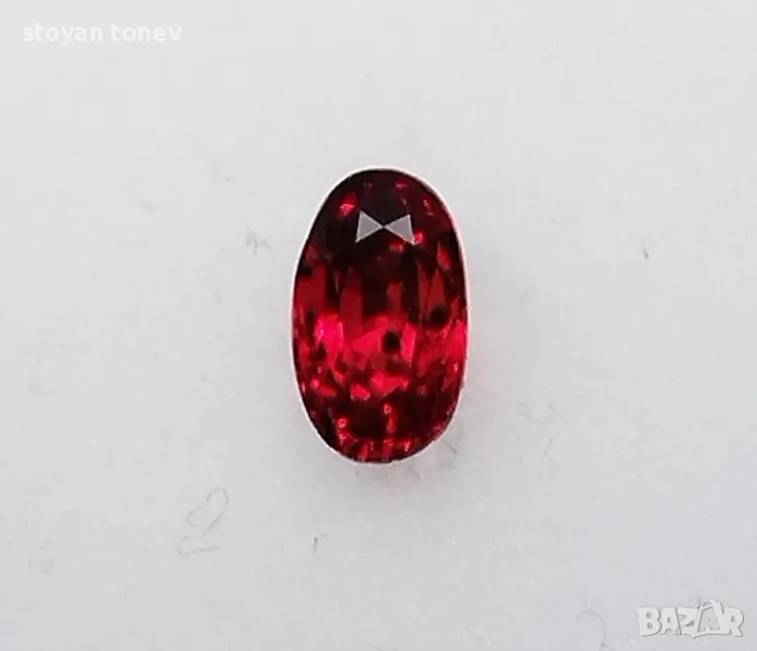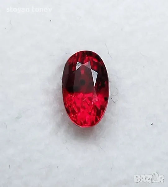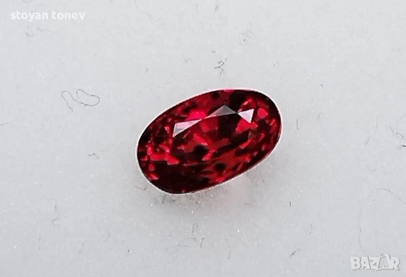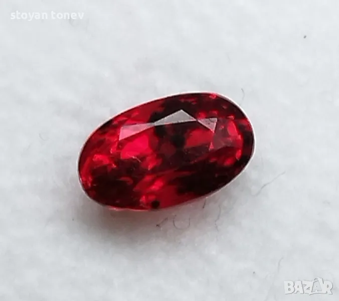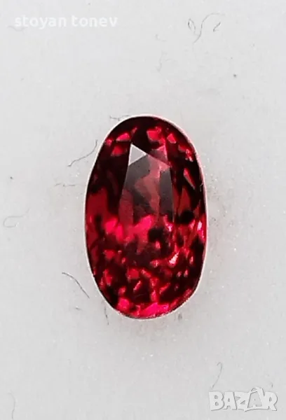 Силно интензивен цвят и силен блясък предлага този рубин, има леки несъвършенства във формата, но останалите му качества компенсират този недостатък.
