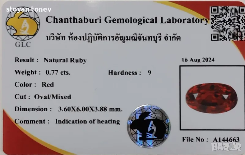 Интензивен оранжево червен рубин - 0.77кт.! Сертифициран! Нов!