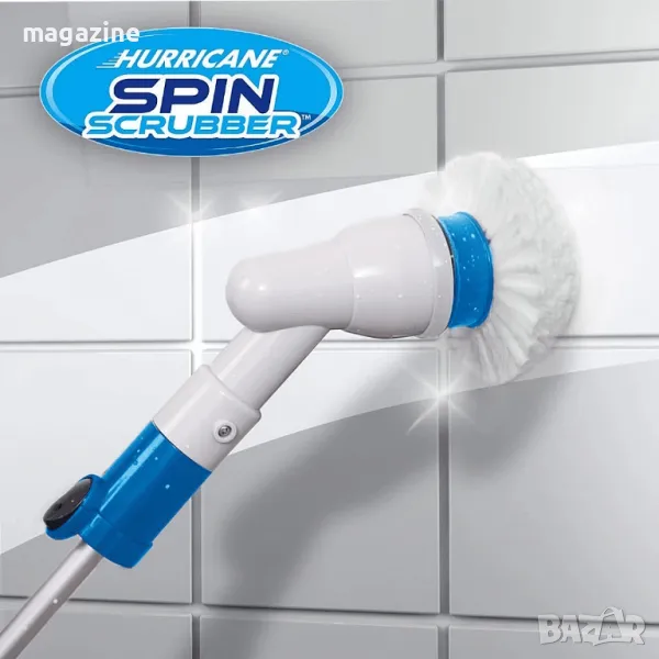 Четка за Почистване на Баня SPIN SCRUBBER - Лесно и Бързо ПочистванеЧетката за почистване на баня SPIN SCRUBBER е перфектното решение за лесно и ефикасно почистване на ваната, душ кабината и плочките в банята. Със своята мощна въртяща се глава, тази четка ще се справи с упоритите замърсявания и ще превърне почистването на вашата баня в лека задача.Основни Характеристики:Мощна Въртяща се Глава: Специално проектираните четки на SPIN SCRUBBER ви помагат да се отървете от мухъла, засъхналите сапунени отлагания, ръждивите петна, петна от засъхнала вода и други видове мръсотии. Въртящата се глава осигурява дълбоко и ефикасно почистване.Удължител: Включеният удължител ви позволява да достигнете и да почистите труднодостъпни места без да се навеждате и сгъвате. Това ви осигурява удобство и комфорт по време на почистването.Високо Качество и Надеждност: Продуктът е изработен от висококачествени материали, което гарантира дълготрайна употреба и ефективност.Многофункционалност: Не само ваната и душ кабината, но и други части от вашия дом могат да бъдат почистени с SPIN SCRUBBER. Тази четка е подходяща за почистване на кухни, автомобили и други повърхности.