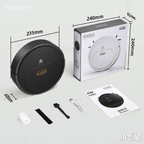 Добре дошли в бъдещето на почистването с RX800 Мини Прахосмукачка Робот. Този умел робот е създаден с една цел - да ви освободи от ръчното почистване и да предложи безупречна чистота във вашите помещения, докато вие се наслаждавате на повече свободно време.Основни характеристики:Компактен и Прецизен Дизайн: RX800 е помощник, готов да се справи с всякакви задачи за почистване. С неговия компактен и стилен дизайн, той лесно достига до труднодостъпни места и осигурява безупречно чисти подове.Автоматизирано Почистване: Роботът се движи самостоятелно, проследявайки и почиствайки вашите подове. Вградените му сензори,му позволяват да се движи безпрепятствено и да избягва препятствия.Ефективна Система за Засмукване: RX800 разполага с мощна система за засмукване, която събира праха и мръсотията от всяка повърхност, оставяйки я безупречно чиста.Тиха Работа: Насладете се на тиха и безшумна работа на робота, като същевременно се наслаждавате на чистота и свежест в дома си.Лесна Зареждане и Управление: RX800 се зарежда бързо и лесно, като вградената му батерия осигурява продължителна работа. С интуитивния панел за управление, роботът е готов да бъде задействан с лекота.