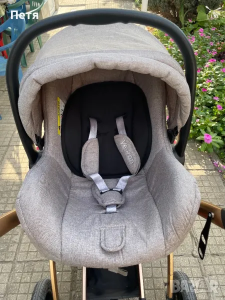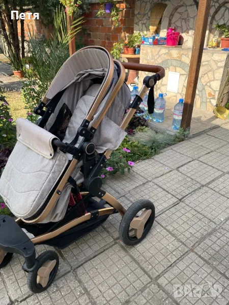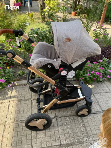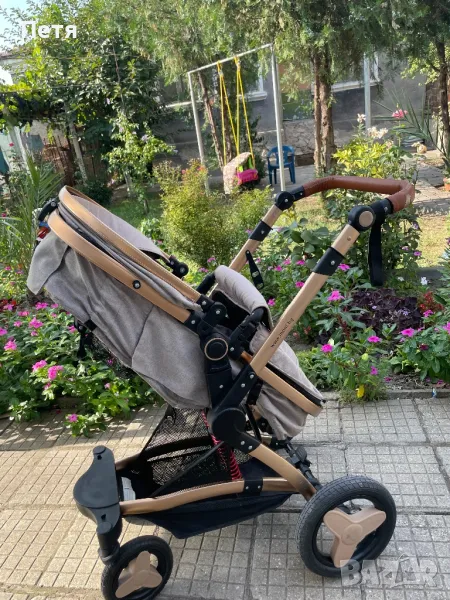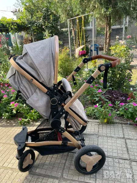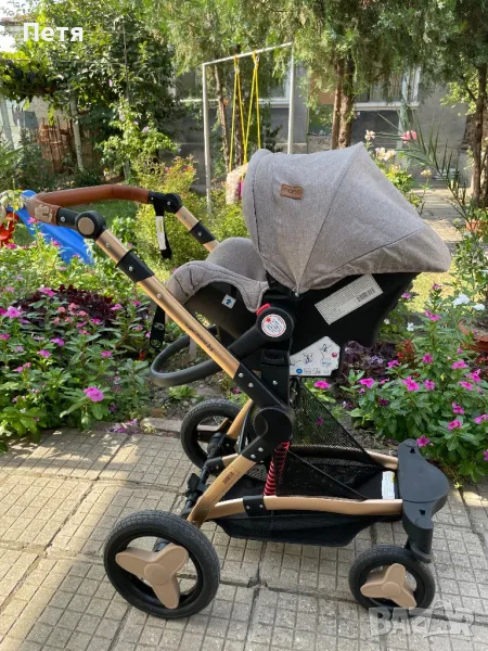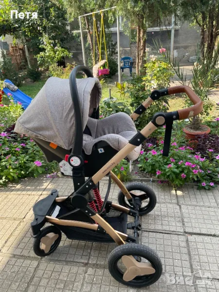 Комбинирана детска количка с допълнителен кош за кола.Изключително удобна и функционална от новородено до 2-е годишно възраст .Подходвща за всички видове сезони.Има лека забележка нА дръжката,подчертано е в едни от последните снимки на обявата
