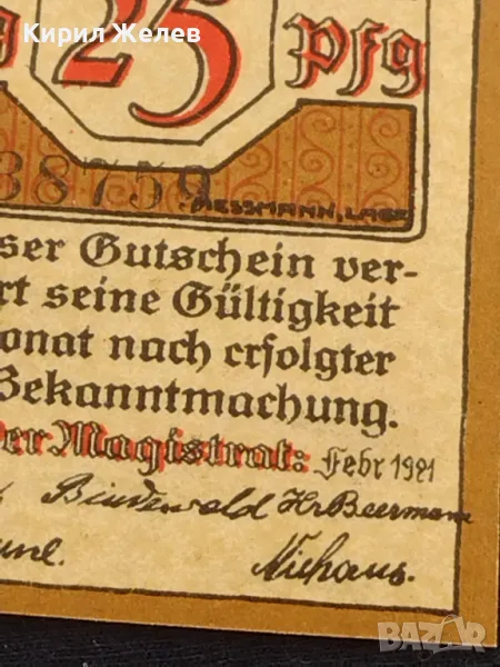 Банкнота НОТГЕЛД 25 пфенинга 1921г. Германия за КОЛЕКЦИЯ ДЕКОРАЦИЯ 48100 → Обява 47212139