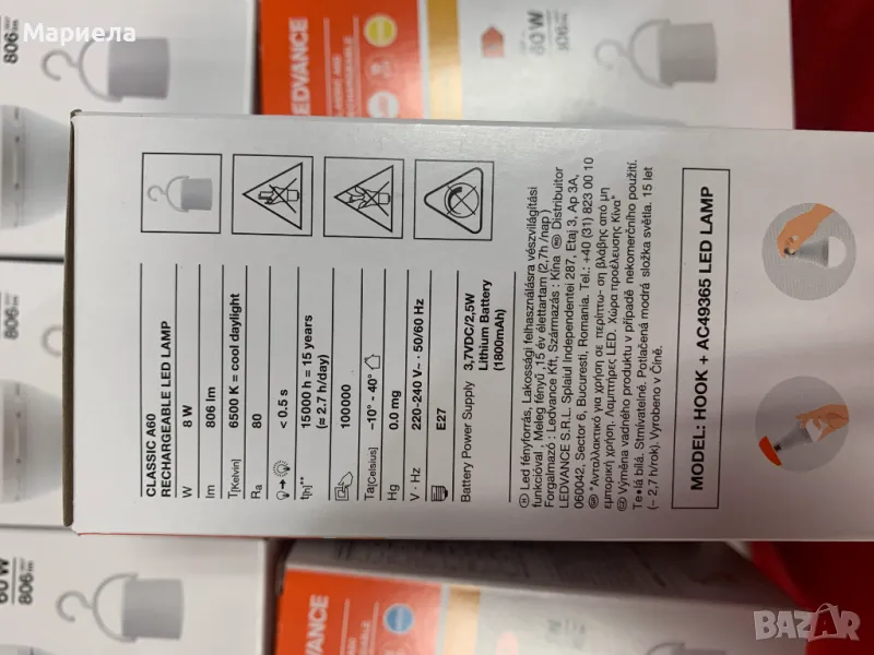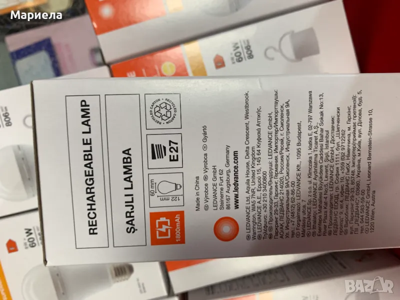 LED крушка с вградена батерия с капацитет 1800 mAh.