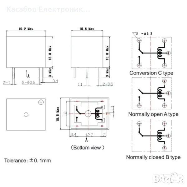 Реле за монтаж на 12V, от известния производител Songle. Може да бъде свързан в "нормално отворена" и "нормално затворена" верига. Модел с 5 пина. На снимка в галерията са показани начините на свързване.