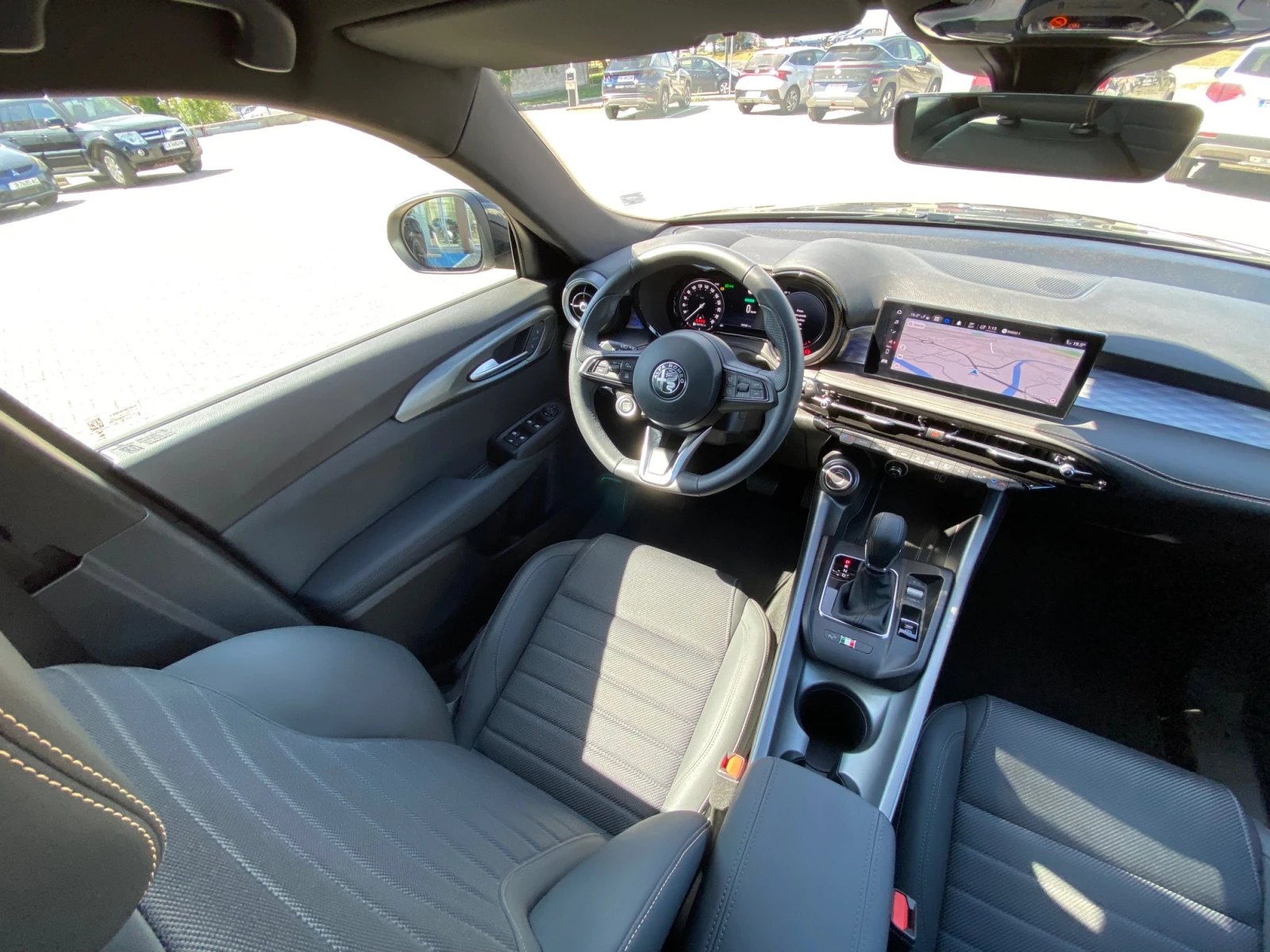Венци Габрово ЕООД предлага на Вашето внимание, внимателно подбран и проверен употребяван автомобил Alfa Romeo TONALE Ti. Купуван нов от България, пълна сервизна история, отлично състояние, два комплекта гуми - зимни и летни с джанти и вентили с датчик. Възможност за лизинг. ЕКСТЕРИОР LNV Матрични FULL LED фарове с адаптивна система - LED дневни светлини - функция за мъгла LPM FULL LED задни светлини 03Y Заден спойлер в цвета на купето MNK Дръжки на вратите в цвета на купето MW7 Хромирана предна решегща - форма V-Shield 0L6 TONALE емблема в хром 2JKTi емблема в хром 0XB Капачки на джантите с цветно лого ALFA ROMEO 5C6 Черни капачки на страничните огледала 62Y Ел. прибиращи се странични огледала 1CY LED осветление на регистрационната табела 4TB Черни спирачни апарати JRCЕл. отваряне и затваряне на вратата на багажника XJM Отвор на резервоара без капачка RD3 Антена тип " перка на акула" в цвета на купето 2VE Екстериорни елементи в черен и сатенен лак 1RU Тъмни рамки на прозорците ИНТЕРИОР 0YB Стелки за предните и задните места 5KW Стандартно едноцветно амбиентно осветление 0YY Декоративна лайстна на таблото с осветление в 5 цвята 784 Стандартно инструментално табло и горни панели на вратите GN9 Сенници с вградено осветление - за водача и предния пътник CUN Конзола на тавана с LED осветление и превключватели 1ZR Осветление на вратите 8N8 Преден централен подлакътник 275 Централен подлакътник за задните седалки и трети подглавник JPU Ел. лумбална опора за водача в 4 посоки CFW 60/40 делими задни седалки с отвор за ски JTM Ръчно регулируеми предни седалки с 6 настройки за водача и пътника 2UO Задни вентилационни отвори 198 Регулиране на коланите по височина SCH Спортен кожен волан с бутон за стартиране на двигателя JY2 12. 3" FULL TFT централен дисплей 1GK 10. 25" сензорен дисплей с висока резолюция, USB, Bluetooth аудио стриминг, гласови команди и навигация 1S2 Черен таван и колони КОМФОРТ HAD Двузонов климатроник със система за следене качеството на въздуха (със задни вентилационни отвори) 051 Автоматично включване на светлините 9U7 Автоматични дълги светлини JHC Чистачки със сензор за дъжд 1J8 Електронна паркинг спирачка с аутохолд функция 508 Предни и задни сензори за паркиране 922 Предни и задни ел. стъкла с едно докосване и функция против прищипване GTF Отопляеми ел. странични огледала GX4 Безключово стартиране с бутон на волана GXP Безключов достъп на вратата на шофьора и предния пътник СИГУРНОСТ И БЕЗОПАСНОСТ 1F6 6 въздушни възглавници (предни за водача и пътника), странични, тип завеси GNK Автохроматично огледало за обратно виждане LSS Система за предупреждение за опасност от челен сблъсък FCW 052 Автономно аварийно спиране в града 9S8 Аварийно спиране с предпазване за пешеходци 1CQ Система за разпознаване на умора при водача 3RV Система за поддържане на лентата 1BW Напомняне за непоставени колани за задните седалки XGM TPMS индикатор за налягането в гумите XA3 Камера за обратно виждане с динамични линии NH1 Адаптивен круз контрол 0XR Система за разпознаване на пътни знаци (с навигация) NH4 Интелигентен асистент за скорост NHR Ограничител на скоростта ТЕХНОЛОГИИ 1S4 Селектор за режим на работа Alfa DNA (3 режима + ESC Off) RTK ALFA CONNECT услуги за свързаност с мобилно устройство RS9 Дигитален радио сигнал DAB RFP APPLE CAR PLAY / ANDROID AUTO 2IM ПАКЕТ ЗИМА NHS Подгряване на волана JPM Отопляеми предни седалки JHH Подгряване на дюзите на чистачкитe