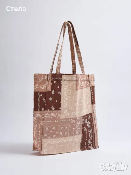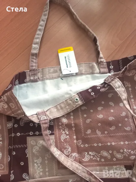 Terranova дамска чанта, тип торба, бежово-кафява, с десен, нова с етикет → Обява 47215148