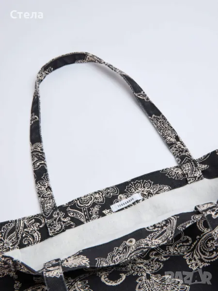 Terranova дамска чанта, тип торба, черна, с десен, нова, с етикет → Обява 47215169