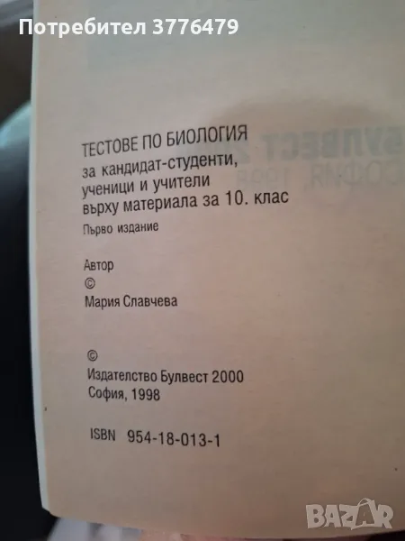 Тестове по биология за кандидат-студенти,ученици и учители,Мария Славчева → Обява 47215481