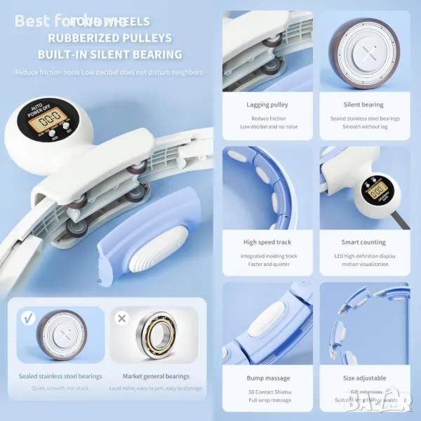 【Лесен за използване и сигурен】: Този претеглен обръч Hula Hoop е лесен за употреба, осигурява стабилност за начинаещи със свързани с магнитни дискове сегменти и меки масажни глави, той предлага 360° масажен интелигентен Hula Hoop.