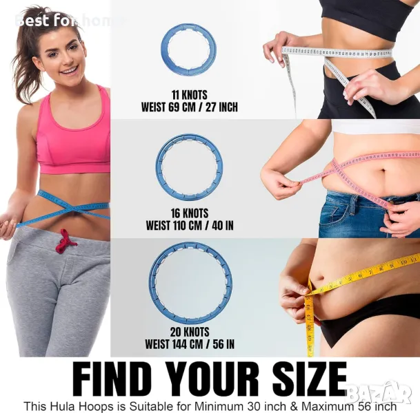 【Моля, обърнете внимание】: Този обръч Hula Hoop с тежести Infinity Hoop не е подходящ за талии с размери по-малки от 27 инча (11 възела/връзки) или надвишаващи 56 инча (с допълнителни 20 възела).