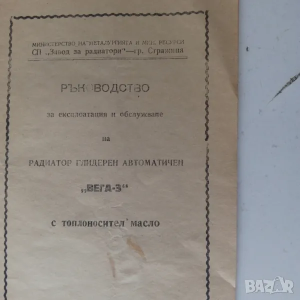 Ръководство за експлоатация и обслужване на радиатор глидерен автоматичен Вега-3 с топлоносител масло от 1983г.