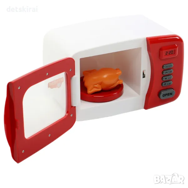 Незаменима играчка в кухнята на малките домакини, която перфектно имитира истинска микровълнова фурна. Тази играчка има звукови и светлинни ефекти, а плочата във фурната се върти, което придава по-реалистичен вид. Има бутон старт/стоп