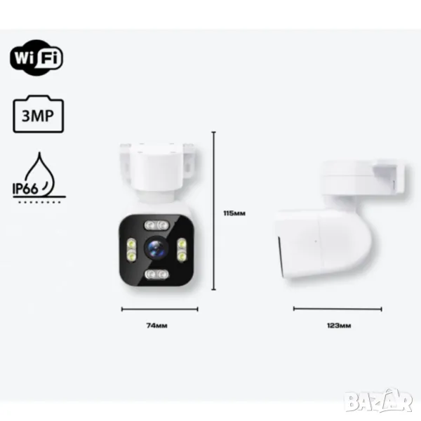 IP камера 3MP, нощно виждане, двупосочно аудио, аларма при движение, водоустойчива IP66