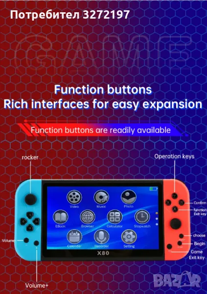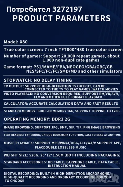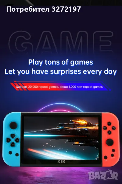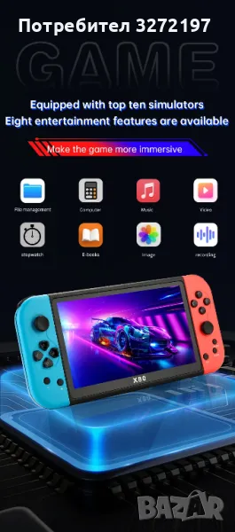 X80 игрова конзола,7-инчов голям екран,10+ емулатора,64гб,специална серия