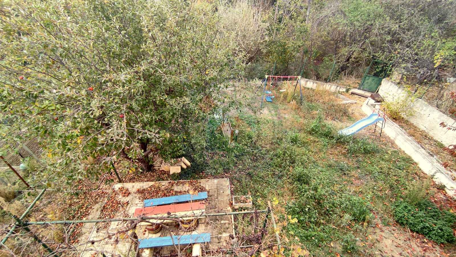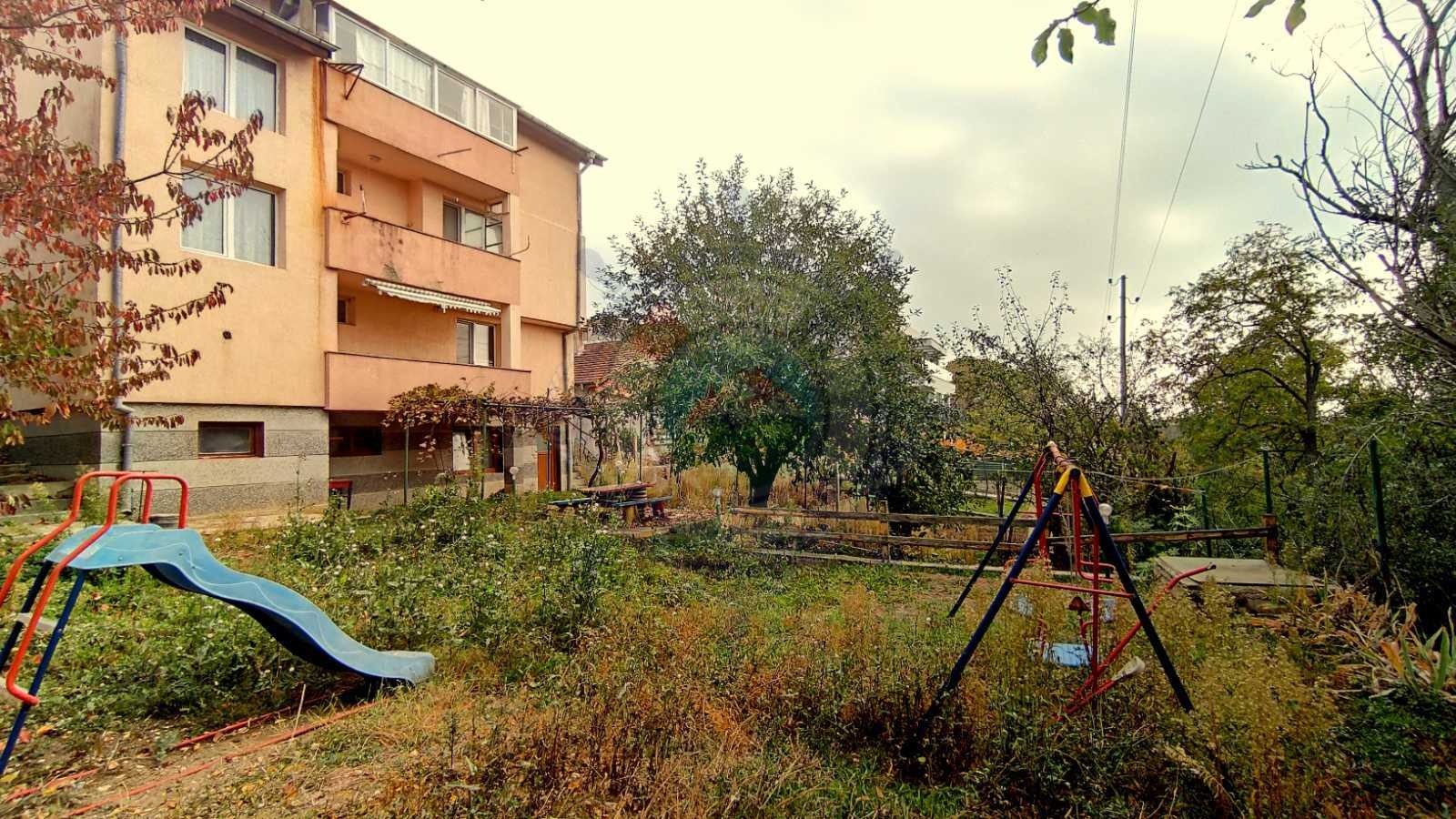 Дворното място с площ 466 кв.м и сградата са включени към новоизградената канализация. Има построени две складови помещения, като в едното е инсталиран котел с отоплителна система за третия етаж, гараж и две паркоместа. На партерно ниво е разположена BBQ зона с механа с площ около 30 кв.м с камина, килер и баня с тоалет.