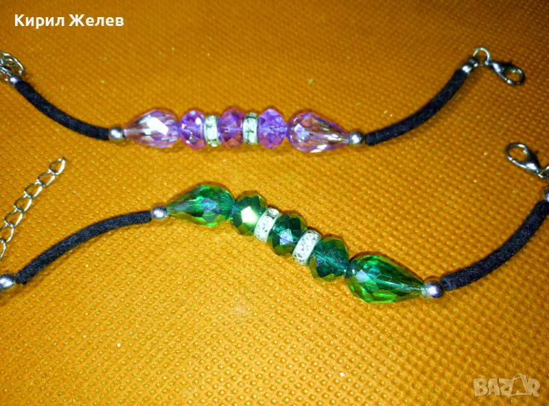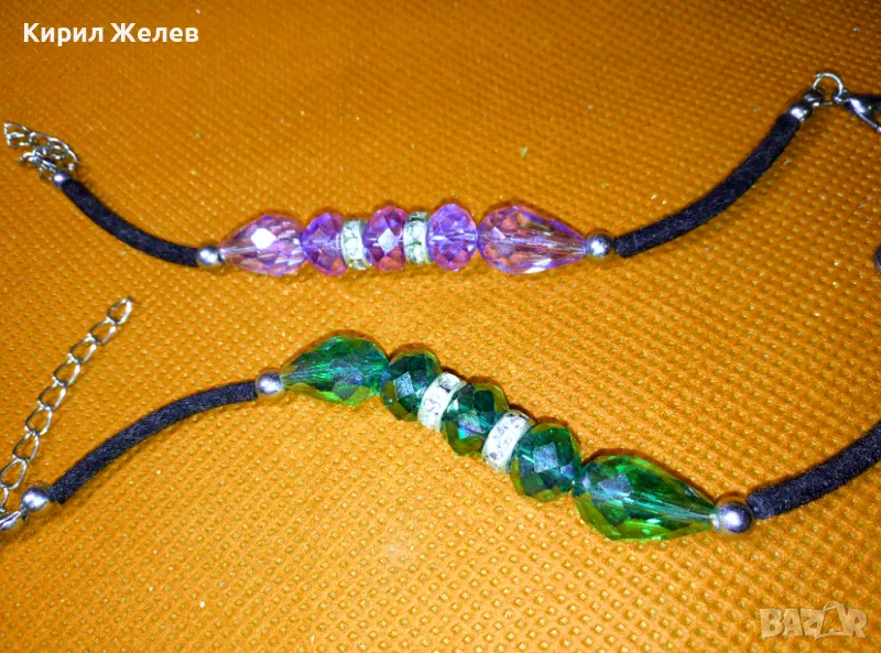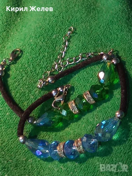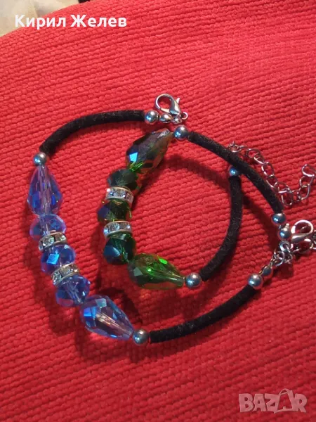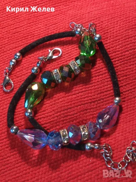 Две ПРЕКРАСНИ СРЕБРИСТИ АРТ ГРИВНИ с ФАСЕТИРАН ЦВЕТЕН КРИСТАЛ 39707