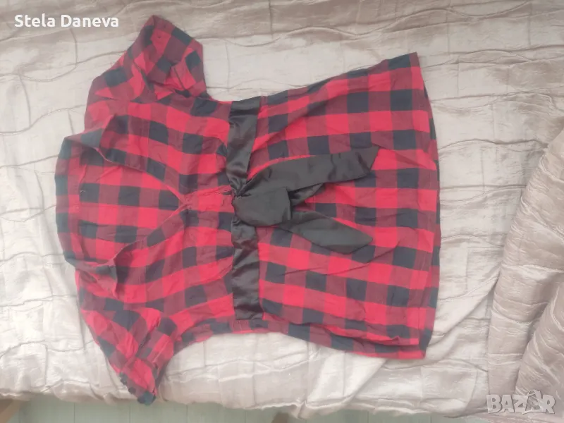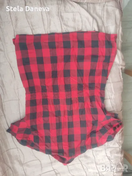 Запазена карирана ризка с къси ръкави и панделка под бюста. Размер с-м