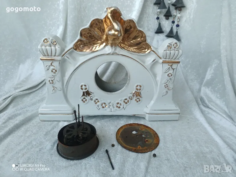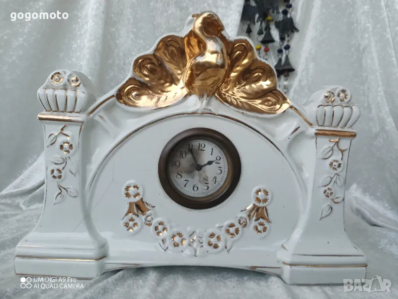 Часовник каминен от порцелан, каминен, Стар, старо, ретро, арт, старинен, винтидж