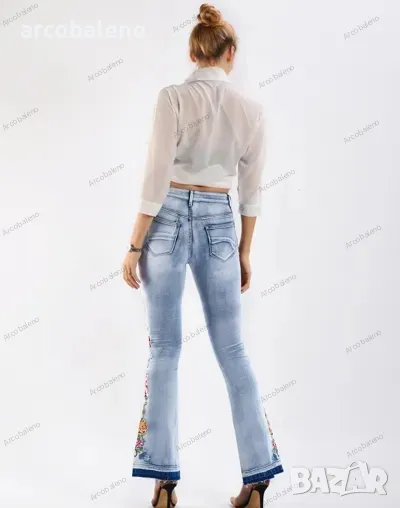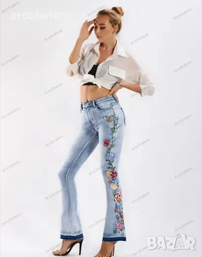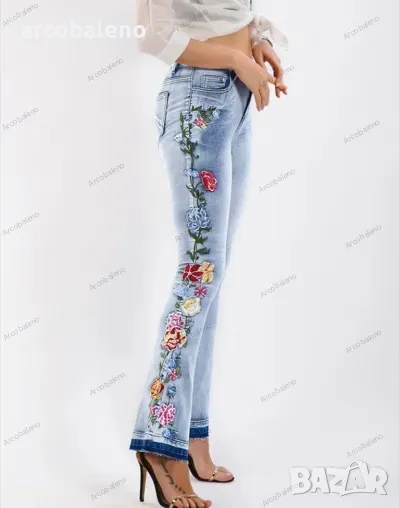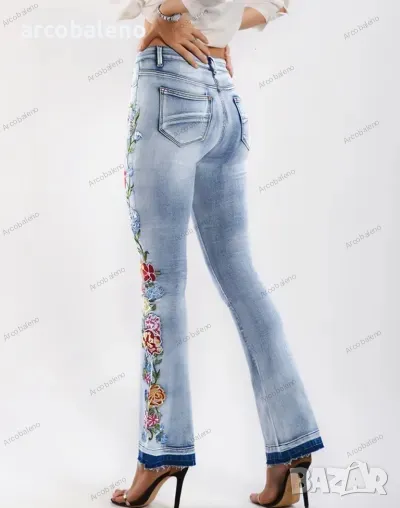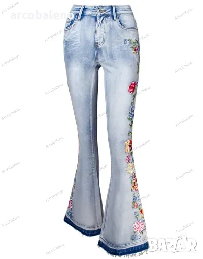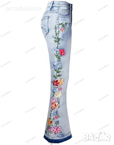 Дамски бродирани дънки с цветя