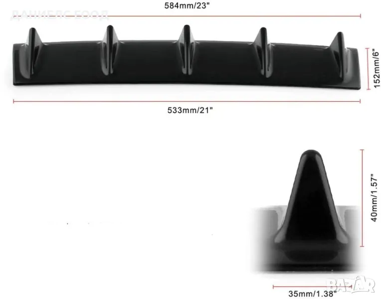 Универсален дифузьор / добавка за задна броня 58см - Черен Гланц.