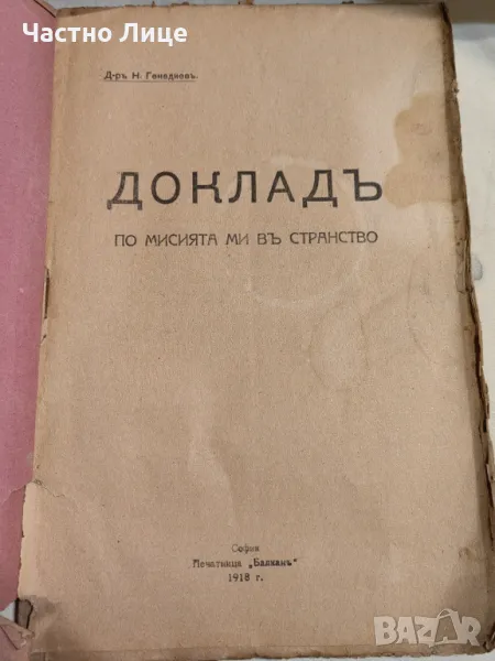 Рядка Антикварна Книга Доклад на д-р Н.Генадиев по Мисията му в Странство , 1919 г. → Обява 47221683