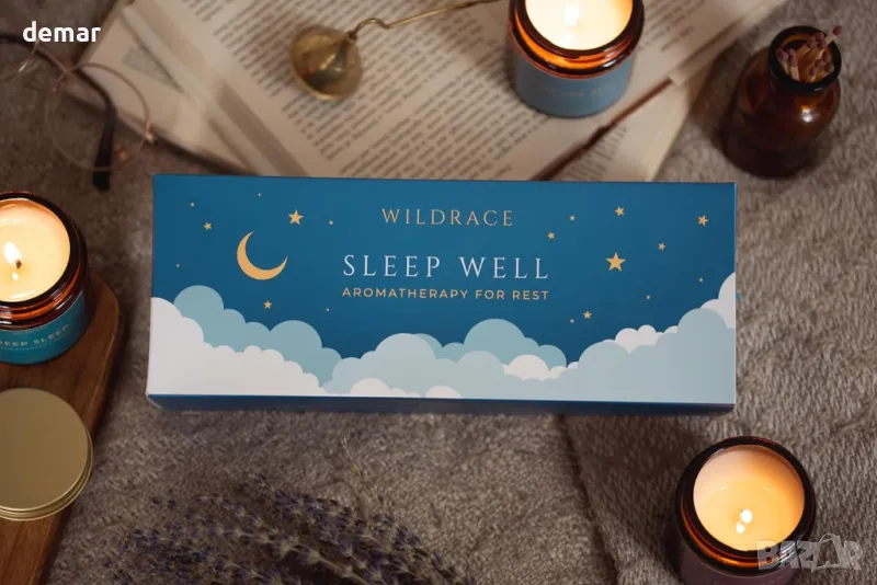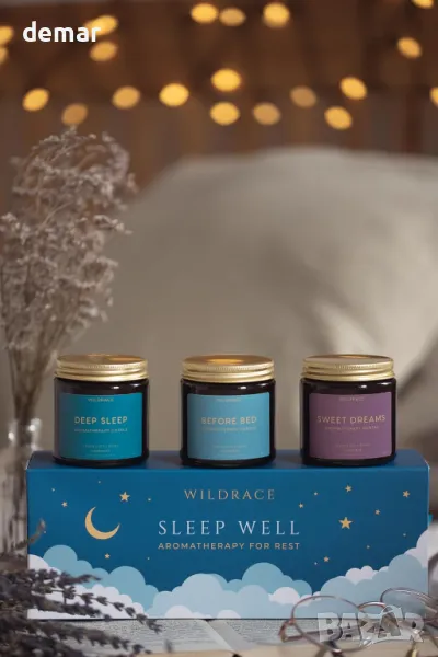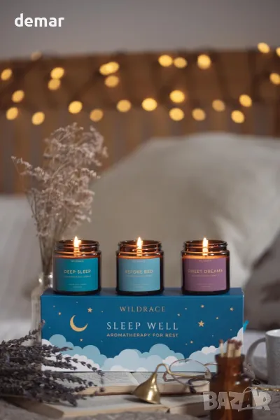WILDRACE Подаръчен комплект свещи Sleep Well, ръчно изляти луксозни със 100% етерични масла