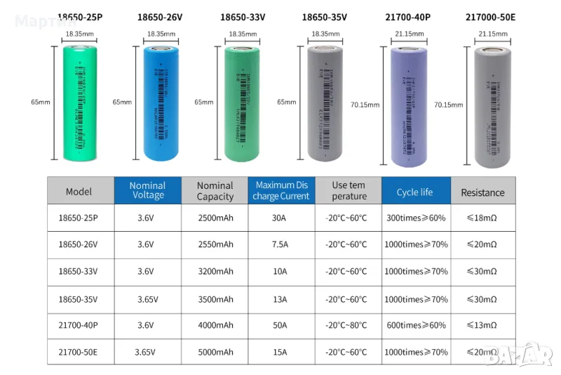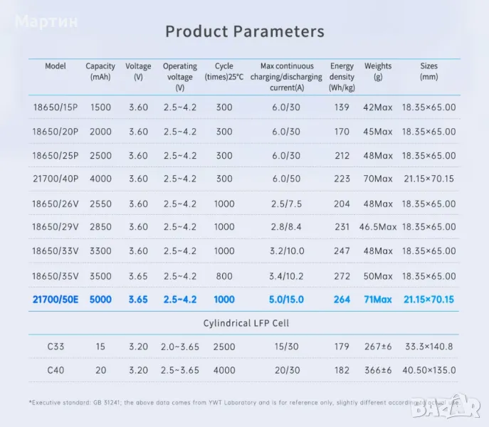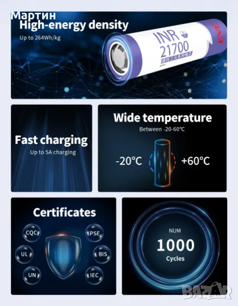 Батерия EVE 50E 21700 5000mah 15A