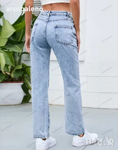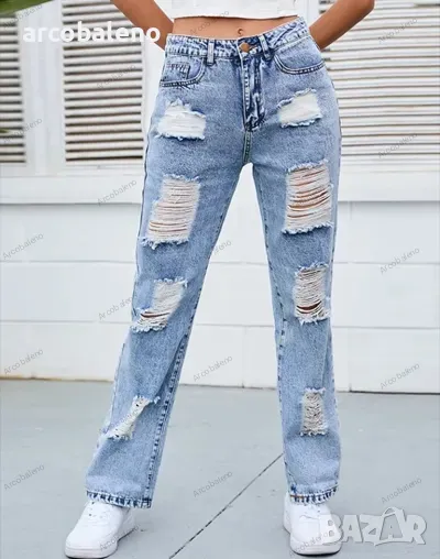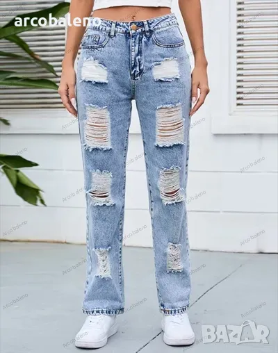 Дамски скъсани изпрани и избелени дънки със средна талия