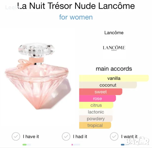 La Nuit Tresor Nude 50 ml от Lancome е флорален аромат за жени, лансиран през 2020 г.