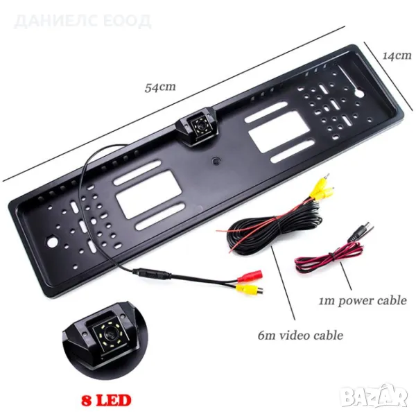 Поставка за номер с 8 LED камера за задно виждане с Нощен режим.