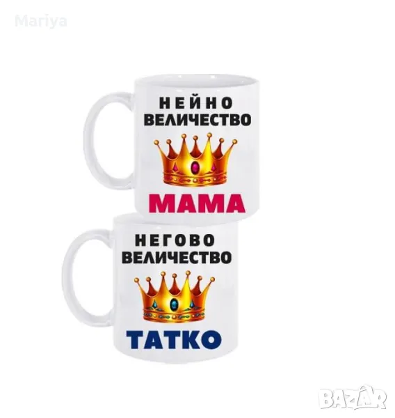 Комплект 2 броя чаши "Тяхно величество MAMA и ТАТКО" в кутия.