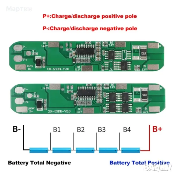 BMS БМС 5S 21V 5A за 18650 литиево-йонна батерия