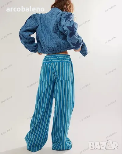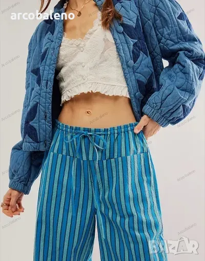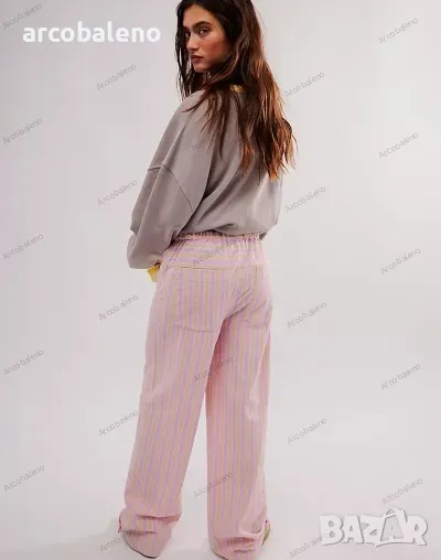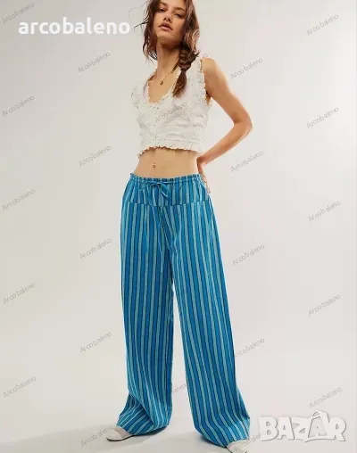 Ежедневни дамски прави широки панталони на райета с шнур и ниска талия, 3цвята