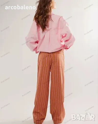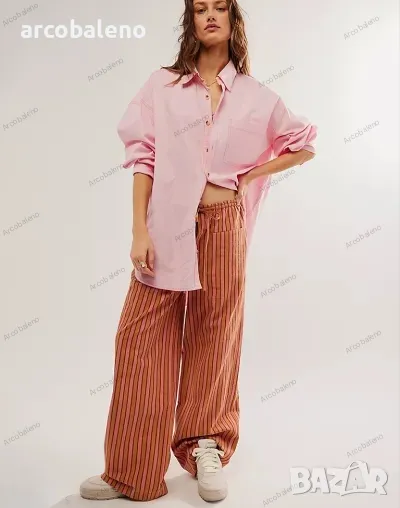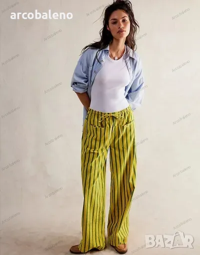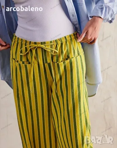 Ежедневни дамски прави широки панталони на райета с шнур и ниска талия, 2цвята