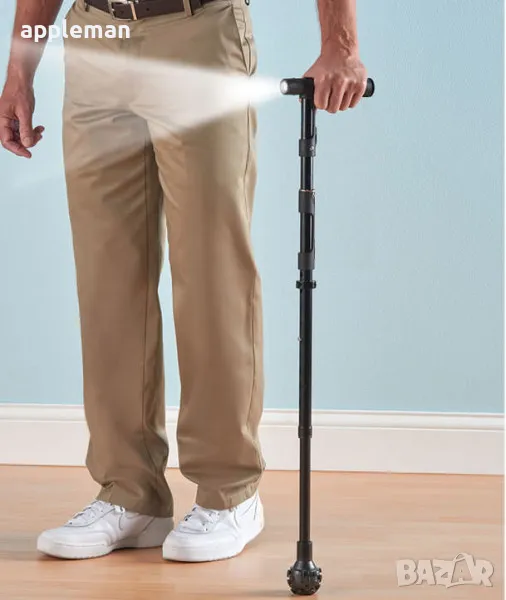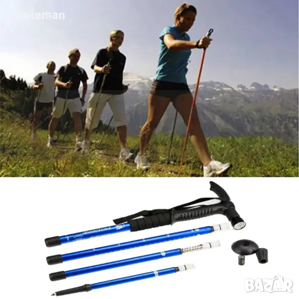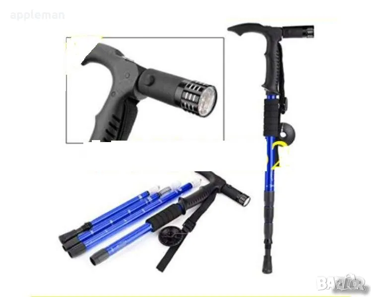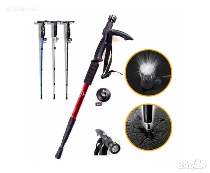 Сгъваем телескопичен бастун с фенерче туристическа щека
