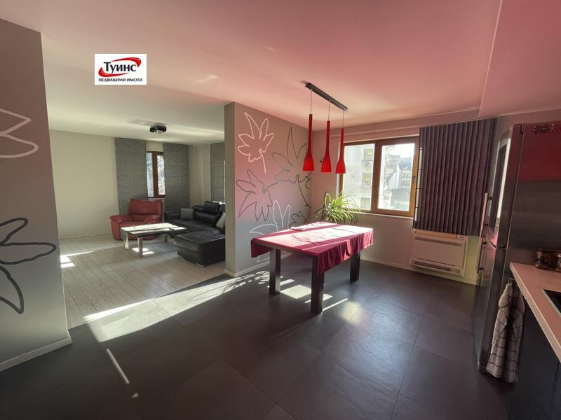 Агенция ТУИНС предлага ексклузивно под наем луксозен тристаен апартамент в нова сграда, кв.Кършияка, до Църквата 'Свети Иван Рилски'. Жилището се състои се от антре, просторен хол с трапезария и кухненски бокс, тераса, 2 спални - едната родителска с баня и тоалетна към нея, гардеробна и тераса, втора спалня - детска, перално помещение, втори санитарен възел. Имотът е напълно обзаведен, отопление - климатици - Дайкин.