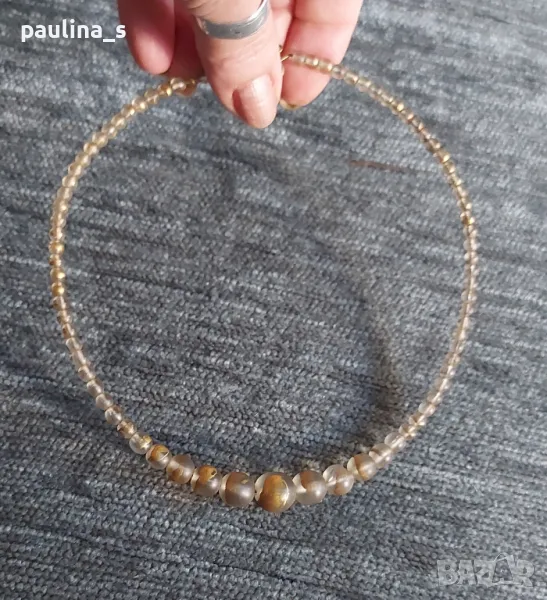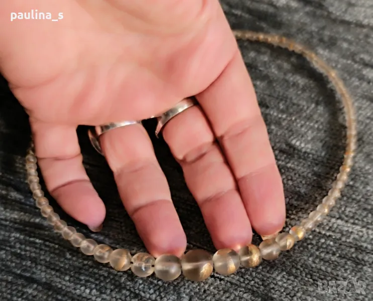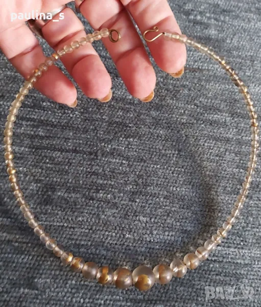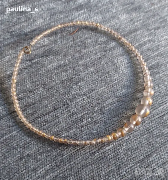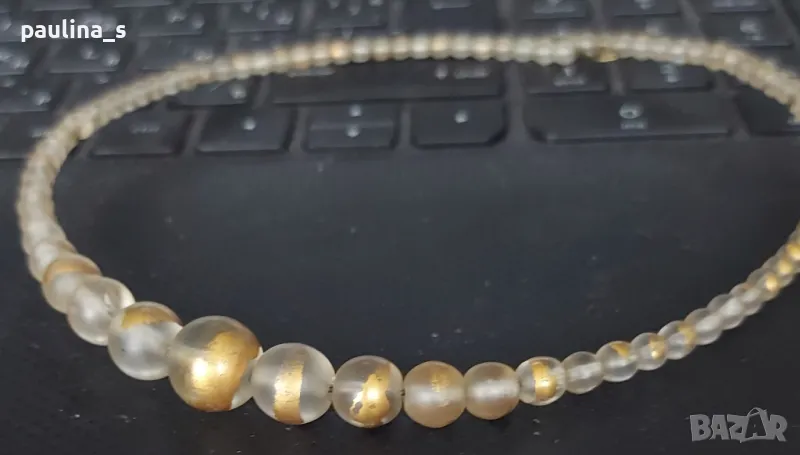 1. Разкошен гердан тип чокър на мемори тел с матирани мъниста с позлата, дължина 39,5см. Необикновено бижу, изключително изискано и приковаващо погледите. За колекция или лично ползване. Има едва забележим дефект на едно от мънистата, указано на снимка и съобразена цена. Колажите са на гердани и колиета, които предлагам в други мои обяви. Моля, разгледайте и другите обяви и последвайте профила. При покупка за над 90лв, поемам част от доставката до офис на Еконт или правя отстъпка от общата цена, така цената за доставката не изглежда твърде непосилна. Приятно разглеждане. Продажбата е с благотворителна цел, цената не се коментира по никакъв начин. Благодаря за вниманието и отделеното време 🙂