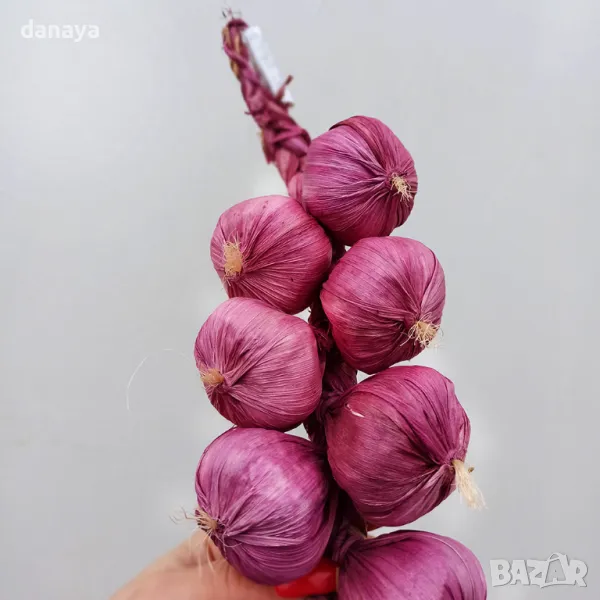 Размер – пълна дължина: 45см; диаметър на една глава лук: 5 см