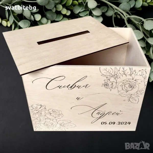 Разнообразие от модели: Предлагаме кутии в различни размери и дизайни – от минималистични и елегантни до детайлно гравирани и украсени. Всеки модел може да бъде персонализиран според вашите изисквания и сватбена тема.